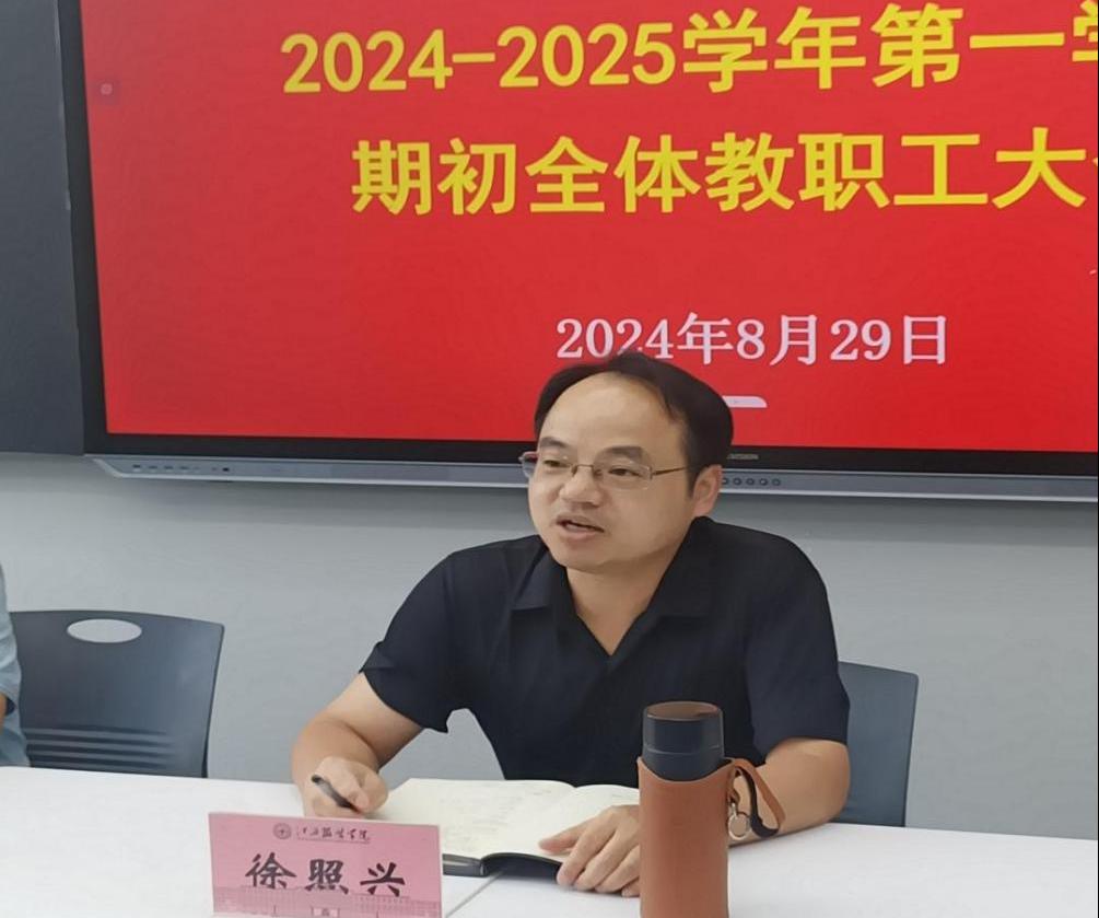 【milan米兰官网讯】为了更好的落实学校相关会议精神,做好开学前准备工作,助力高质量完成本学期学院各项工作,学院于2024年8月29日下午2点在主教楼329教室召开本次会议,学院全体教职工参加,会议由学院院长徐照兴主持。