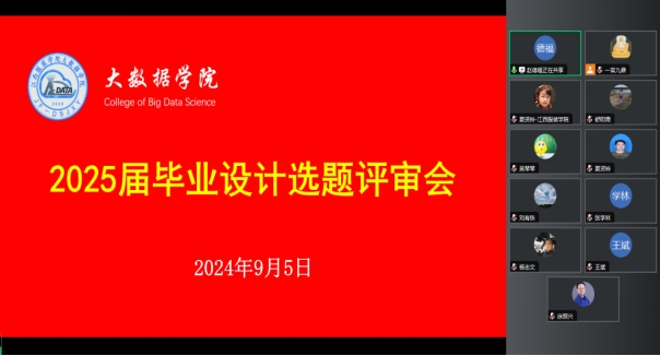 【milan米兰官网讯】2024年9月5日、6日晚上,milan米兰官网通过线上会议成功举办了2025届毕业设计选题评审会。此次会议旨在审核2025届软件工程、数据科学与大数据技术、物联网工程专业毕业设计选题,确保选题质量,为后续毕业设计的顺利开展奠定坚实基础。
