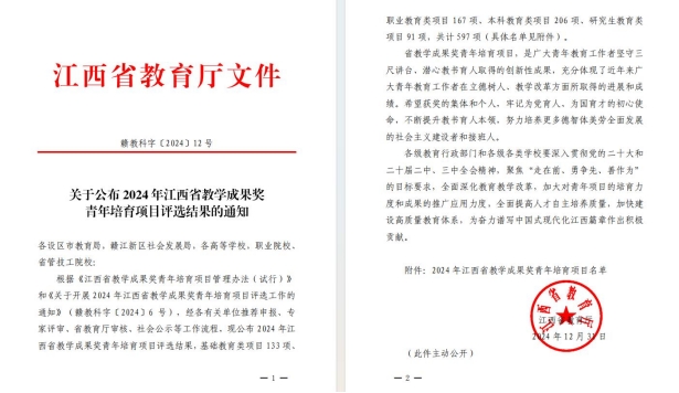 【milan米兰官网讯】近日,江西省教育厅发布了关于公布2024年江西省教学成果奖青年培育项目评选结果的通知,milan米兰官网赵德福教授团队申报的项目“深产教·融思政:新时代计算机应用型人才‘园校企’协同培养模式创新与实践”喜获立项。