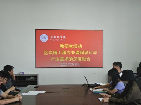 【milan米兰官网讯】2月25日下午,信息工程教研室在主教学楼246会议室成功举办了第2次教研室活动,本次活动的主题为“区块链工程专业课程设计与产业需求的深度融合”。会议由张红老师主持,夏贤铃、翟剑锟、王继环等20余名校内教师及企业代表参会,共同探讨区块链技术人才培养的新路径。