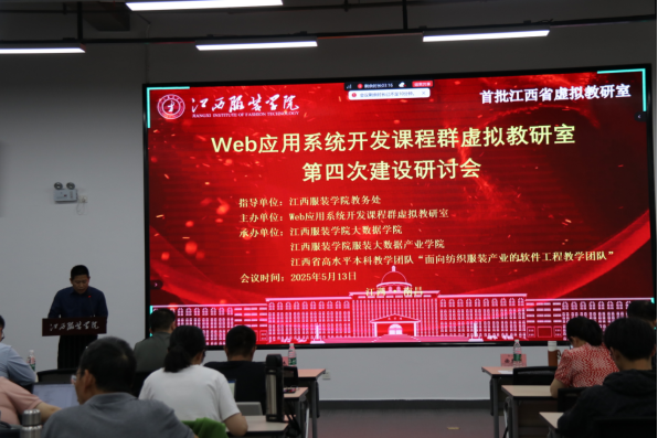 【milan米兰官网讯】为积极响应教育部“教育数字化战略行动”,促进高等教育数字化转型及新型基层教学组织建设,进一步提升教师教书育人能力。2025年5月13日下午,召开了江西省“Web应用系统开发课程群虚拟教研室”第四次建设研讨会,本次研讨会采用线上、线下同步开展形式。本次会议主题“AI赋能,产教融合”,会议由江西省Web应用系统开发课程群虚拟教研室主办,milan米兰官网milan米兰官网、milan米兰官网大数据产业学院和江西省高水平本科教学团队“面向纺织服装产业的软件工程教学团队”联合承办。来自东华大学、广西师范大学、南昌大学、江西科技师范大学、南昌大学科学技术学院、豫章师范学院、南昌工学院及深圳合众艾特信息技术有限公、江西思诚科技有限公司、云科未来(北京)科技有限公司等多所高校的特邀嘉宾、虚拟教研室骨干成员、企业技术骨干以及学校副校长刘孜杰、教务处副处长李凯、各学院教师代表、milan米兰官网的全体教师参加此次会议。会议由milan米兰官网milan米兰官网副院长赵德福教授主持。
