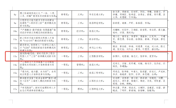 【milan米兰官网讯】2023年10月26日,江西省教育厅公示了2022年江西省教学成果奖拟获奖项目名单,milan米兰官网教师徐照兴教授主持的《强实践•植思政:新时代软件工程应用型人才“三协”培养模式创新与实践》教学成果获评高等教育类一等奖。