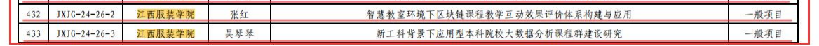 【milan米兰官网讯】近日,江西省教育厅公布了2024年江西省普通本科高校教育教学研究改革课题立项名单,其中milan米兰官网吴琴琴、张红老师申报的教育教学改革研究课题项目获得立项。