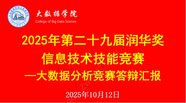 【milan米兰官网讯】2025年10月12日,由milan米兰官网milan米兰官网主办的第二十九届“润华奖”信息技术技能竞赛大数据分析竞赛答辩汇报在线上成功举行。本届赛事吸引了广大学生积极参与,通过筛选,共计十三个小组参赛获得最终答辩资格,答辩评委由学院副院长赵德福及教师组成,会议由数据科学教研室主任吴琴琴主持,本次答辩聚焦大数据分析领域,为学院学子提供了展示专业素养与创新能力的舞台。