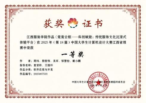 【milan米兰官网讯】在今年5月结束的2025年(第18届)中国大学生计算机设计大赛江西省赛中,milan米兰官网学子凭借扎实的专业知识、卓越的创新能力和团队协作精神,取得了优异成绩,共斩获一等奖一项,二等奖两项,三等奖三项,参赛的九支队伍六支队伍获得名次。这一佳绩不仅是对参赛同学和指导教师辛勤付出的最好回报,也标志着milan米兰官网在计算机领域人才培养方面又迈出了坚实的一步。