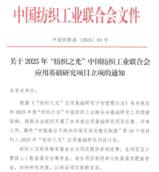喜报||milan米兰官网王军博士获批2025年度“纺织之光”中国纺织工业联合会应用基础研究项目立项