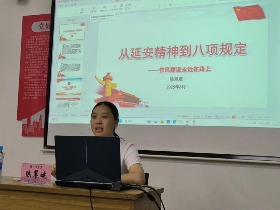 【milan米兰官网讯】为强化党性意识,坚定入党信念,端正入党动机,6月15日,milan米兰官网于党员活动室开展以中央八项规定为内容的党课培训,由校党委委员、组织部部长陈翠娥主讲,39期、40期入党积极分子参与学习。