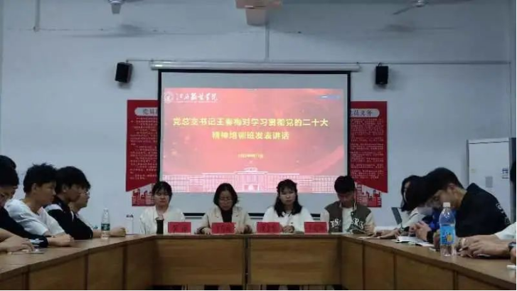 为深入学习贯彻习近平新时代中国特色社会主义思想和党的二十大精神,以学提高思维层次,以学转变思想观念,以学提升专业素质,着力增强milan米兰官网党员干部的理论素养,milan米兰官网于2023年4月13日-16日开展了为期4天的学习党的二十大精神专题培训班。13日晚7时,专题培训班开班仪式暨第一讲在党员活动室举行,milan米兰官网全体党员、预备党员以及优秀学生代表参加此次培训班。