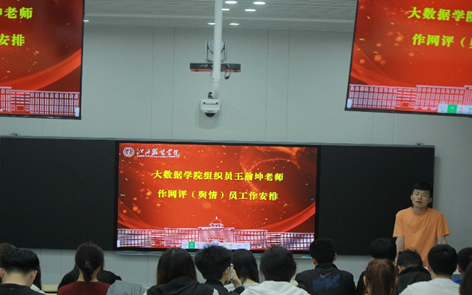 内容第二项,组织员王前坤老师进行“强化网评员队伍建设,把牢舆论引导主动权”的主题工作。以习近平总书记:“没有网络安全,就没有国家安全”开头,强调我们在座的网评员队伍建设的重要性。并且也作为学院的“舆情监控员”,我们在日常生活中应时刻关注网络舆论动态,积极引导并使其正向发展。网民们反映问题是维护自己的权益的表现,但使用的方法是否得当是我们需要重点关注的问题。希望广大网评员们能以身作则,勇于担当,把正能量传递出去,为学院建设和学校发展能做出有利贡献。