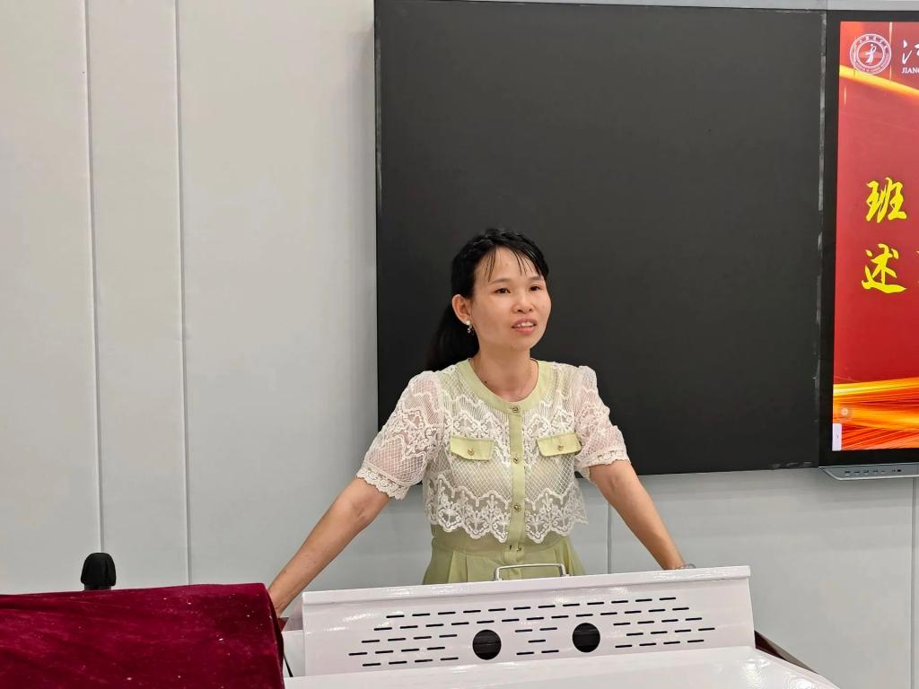 学工办副主任周文琴提到以责任心为基础,提高执行力,在学习、生活、工作中做好带头模范作用,强调要总结过去、展望未来,并鼓励全体学生以奋发的精神、昂扬的斗志、务实的作风创造更加辉煌的成绩。其中注意三点建设:一是筑牢思想之魂,赓续红色血脉,在党史学习中夯实信仰根基;二是笃行奋斗之姿,锤炼过硬本领,在砥砺奋进中掌舵人生航向;三是紧抓创新之要,把握时代主题,在实学实干中促进全面发展。