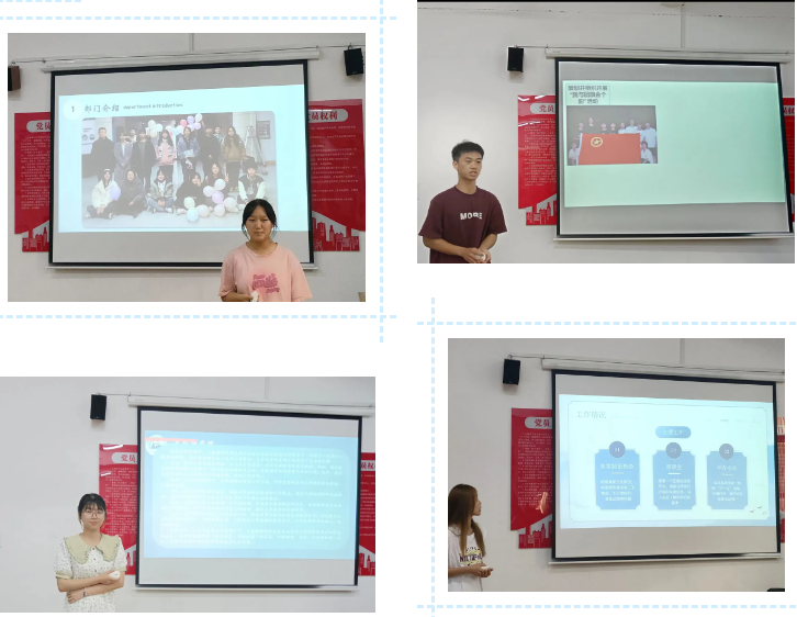 会议伊始,各部门负责人严阵以待,在述职时他们各展风采,以自己独特的方式从部门成员、工作概述、工作总结、未来期望等方面进行讲述。在他们的PPT中放置的图片,参会人员们可以看到当时开展的活动的场景,并感受到当时一些活动的有趣。在他们工作总结中,参会人员们也可以看出,他们对于此次述职工作大会的重视以及对于这学年工作他们感悟深刻。在他们的未来展望中,参会人员们也可以感受到,各部门负责人们对于工作的认真以及对于milan米兰官网分团委学生会越来越好的美好期望。