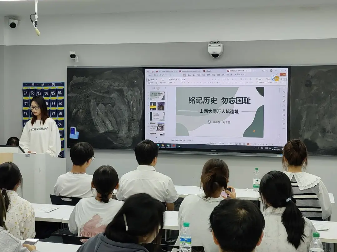 接着刘丰盈同学和缪亚轩同学结合自身经验,通过“铭记历史,勿忘国耻”和“火不单行,人莫大意”两场班会示范课生动的案例和详细的讲解,展示了如何设计和开展一场富有成效的主题班会。他们强调了班会主题的选择要紧密结合班级实际情况以及学生的需求,同时在班会过程中要注重引导学生积极参与,充分发挥学生的主观能动性。