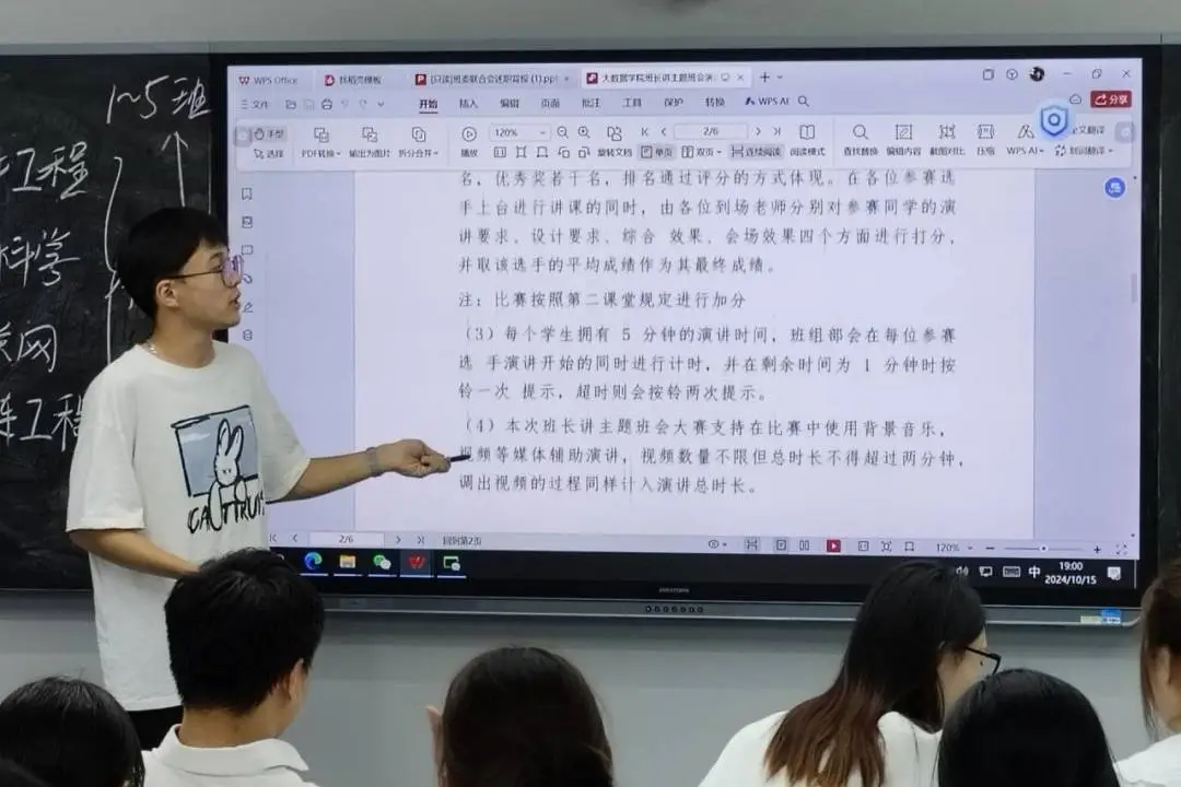 【milan米兰官网讯】为进一步发挥班长典型引领示范作用,切实加强班集体建设,提高班级学生素养。milan米兰官网班委联合会于2024年10月15日19时在主教楼330举办了2024年秋季学期“班长讲主题班会课”竞赛培训活动。本次培训特邀milan米兰官网23数据科学本科3班刘丰盈、服装工程学院23服教本科1班班长缪亚轩作主题班会示范课分享。本次培训由会长王洋主持。