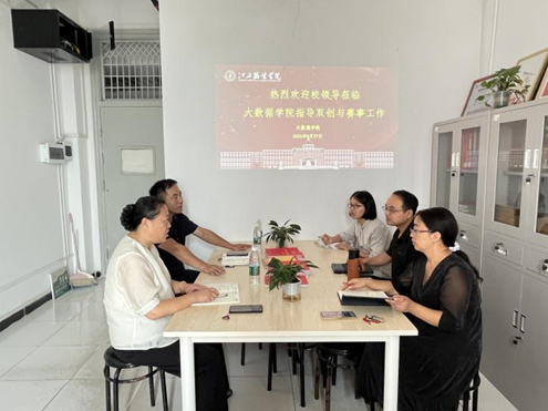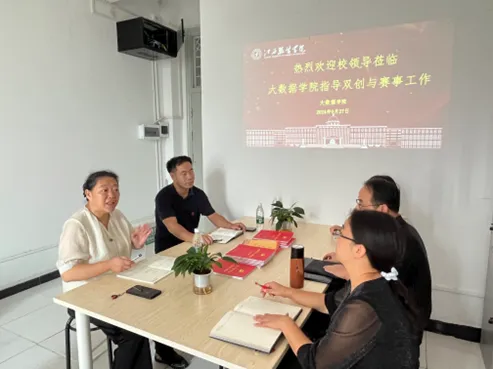 【milan米兰官网讯】2024年9月27日上午10时,校长助理马国照、双创学院院长段婷一行莅临milan米兰官网指导双创与赛事工作,milan米兰官网院长、党总支书记王春梅、教研室主任吴琴琴参加会议。