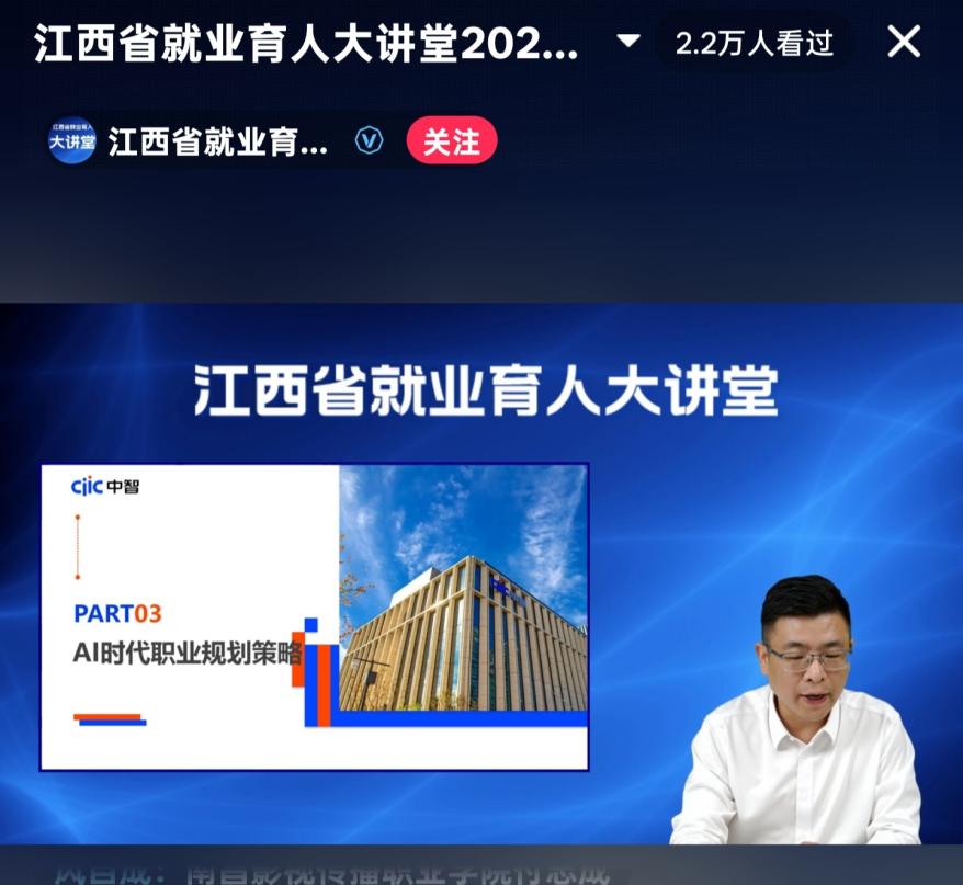 【milan米兰官网讯】2025年5月29日晚19:00,milan米兰官网积极组织全院师生通过线上平台,共同观看了“就业育人大讲堂”直播课第十七期。本期讲堂聚焦当下科技浪潮中的热点话题,由中智江西研究院院长赵峰担任主讲嘉宾,围绕《智潮奔涌AI时代大学生职业规划的转型与升维指南》展开深度授课,讲解AI时代下大学生如何进行职业规划、顺利择业就业。