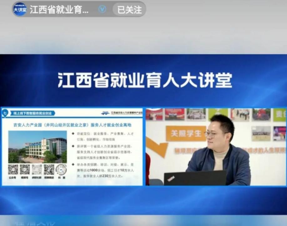 吉安人力资源产业园作为本期直播课的特邀嘉宾,详细解读了吉安市的引才政策,包括人才补贴、住房优惠、创业支持等方面的内容,让同学们对吉安的人才环境有了更深入的了解。产业园代表不仅介绍了吉安市在人才方面的独特优势,还分享了吉安市近年来在吸引和留住人才方面所取得的显著成效,鼓励同学们积极投身吉安的发展建设,实现个人价值与社会价值的双赢。