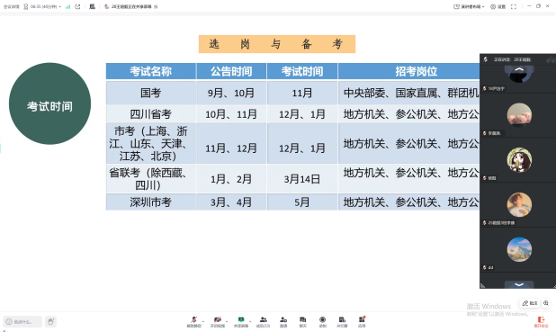 分享会聚焦考公备考全流程,首项内容便是考公时间与岗位的“时间轴指南”。王煊毅学长梳理了国考、省考的公告发布与考试节点:国考公告多在9-10月发布,11月开考;省考集中在10-12月启动报名,12月至次年1月笔试;省联考(除西藏、四川外)则在1-2月出公告,3月14日统一笔试。不同考试对应的招考岗位类型,王学长也同步进行了明确,帮助学生提前规划报考节奏。