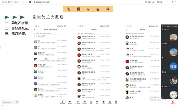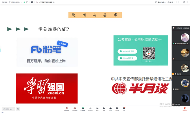 选岗策略分享则直击考生“痛点”。王煊毅学长总结出“三大准则”:异地不乡镇,避免偏远地区岗位的生活适配性问题;忌好高骛远,建议结合自身实力选择竞争匹配度高的岗位;事以密成,备考期间保持专注、减少外界干扰。现场还借助讲述多个考生案例,以真实经验提醒大家理性选岗。
