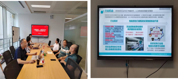 沥沥大雨阻挡不了学院对产学研深度融合探索的步伐。10日下午来到调研第一站——上海同温层信息科技公司,总经理周强、技术总监方明等企业领导接待milan米兰官网一行。双方重点洽谈了AI智能验布、色差检测、VR赋能教师信息技术能力等项目,确定了以“AI智能验布”研究内容申报省重大科技项目,以“色差检测”研究内容申报产学研项目或省自然科学基金项目,探索了VR技术赋能教师能力大赛。座谈结束后,周总带领我们参观并体验了该司研发的智能产品。