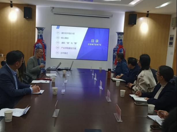 会议由院长徐照兴主持,徐院长首先就各位企业专家领导来milan米兰官网洽谈共建产业学院事宜表示热烈的欢迎和感谢,并就milan米兰官网milan米兰官网的相关现状以及专业建设情况进行了简要的介绍和说明,接下来吴旭健总经理以“浦东软件园园区型产教融合方案”为主体,分别从浦东软件园介绍、相关核心理念、浦软的“测”与“聘”、产业学院建设方案和合作模式共5个方面进行了详细的介绍和分享。