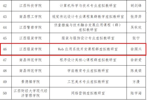 【milan米兰官网讯】近日,江西省教育厅发布《关于2023年江西省首批虚拟教研室立项建设点的公示》,大数据学院喜获佳绩,由徐照兴教授负责的“Web应用系统开发课程群虚拟教研室”获批2023年江西省首批虚拟教研室建设立项。