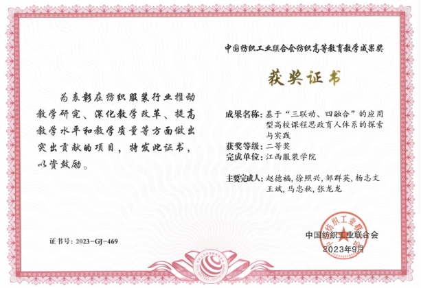 喜报||milan米兰官网二项成果荣获“纺织之光”2023年度中国纺织工业联合会纺织高等教育教学成果奖